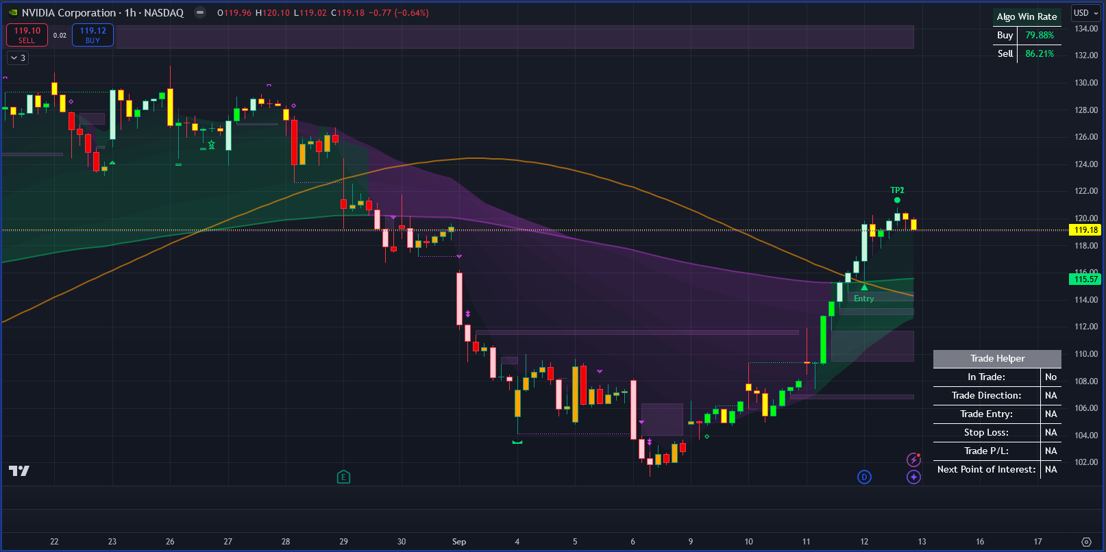 ✔️ Entry/Exit Signals with Win Rate Display and Trade Helper